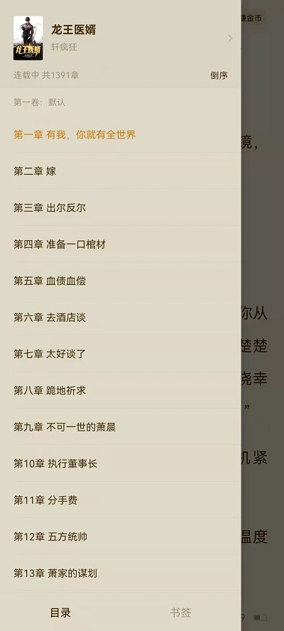 3、点击目录以后,左边就会弹出目录界面,用户可以上下滑动,查看更多目录。