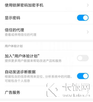 2、加入用户体验计划、自动发送诊断数据:在【设置】中找到【系统安全】,然后将【加入用户体验计划】和【自动发送诊断数据】功能关闭(广告服务即便关闭也不会减少);