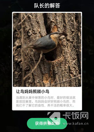在支付宝蚂蚁森林的保护地巡护玩法中,“小鸟掉到地上该怎么办”问题是随机出现的一个提问,需要正确回答答案才可以获得动物拼图,那你知道正确答案是什么吗,下面就和小编一起来看看吧!