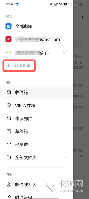 2、然后选择【添加邮箱】选择绑定新的邮箱;