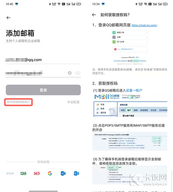 Tips:oppo邮件目前支持个人邮箱和企业邮箱,在绑定账户时,根据对应邮箱来绑定,如QQ邮箱需要使用授权码登录,网易邮箱则可以用账号密码或授权码登录。