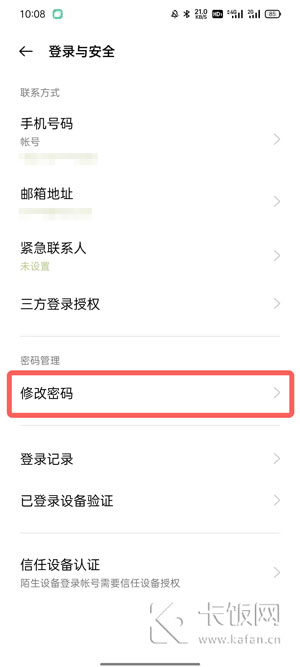 2、在登录与安全界面中,点击【修改密码】进入;