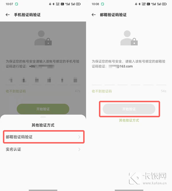 5、邮箱账号验证:确保账号已绑定了邮箱账号,在手机号码验证界面点击【其他验证方式】,然后选择【邮箱验证码验证】,输入接收到的验证码点击【开始验证】;