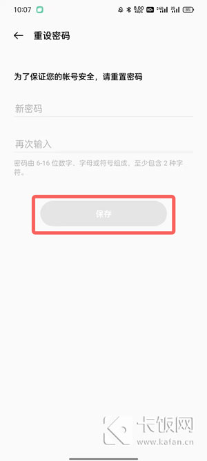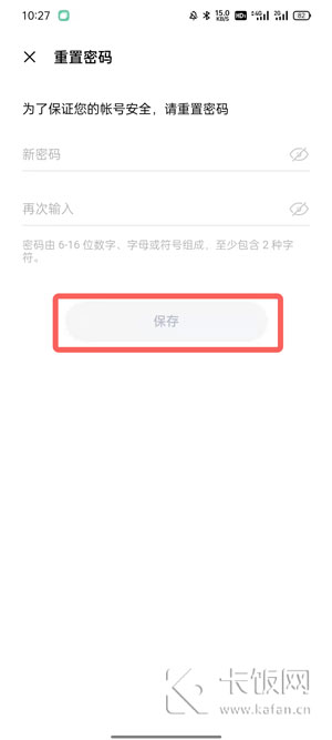 7、通过账号验证之后,只需要输入账号设置的新密码,点击【保存】即可。