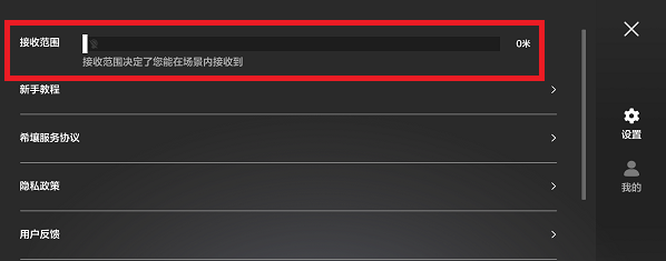 2、在设置界面中,我们需要把最上面的【接收范围】缩小到最小的范围,只有这样才能不听到任何的声音,因为这个范围是我们接收语音的范围,具体的声音是关不掉的,所以我们需要把接收范围关到最小。