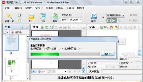 02 执行“文件-打开PDF文件/图像”,打开你要转换的文档。这时软件会开始识别,文件大的需要一点时间。