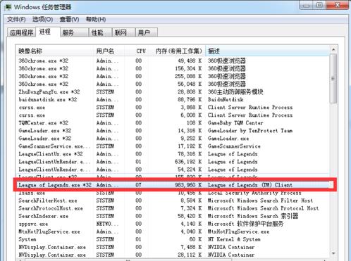 1、打开任务管理器,找到LOL进程右击