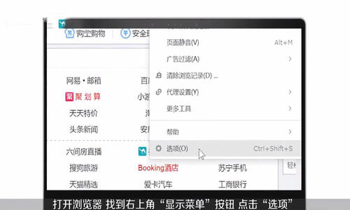 01 首先打开搜狗浏览器,在右上角点击“显示菜单”,再点击“选项”,再点击“高级”。