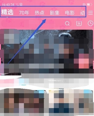 02 进入优酷首页,在首页上方箭头指着的地方向左滑屏,