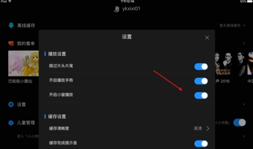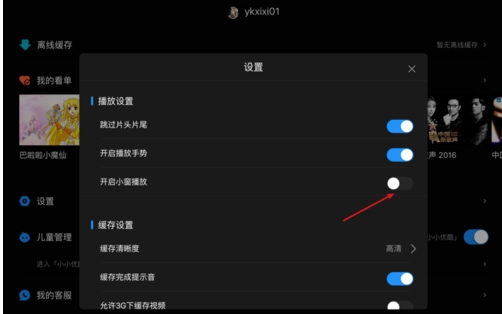 4、将开关关闭即可关闭小窗播放