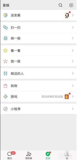 02在微信下方的菜单当中选择发现,点击朋友圈选项,
