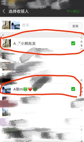 04 选择收信人,将需要发送信息的好友,打v进行选择,