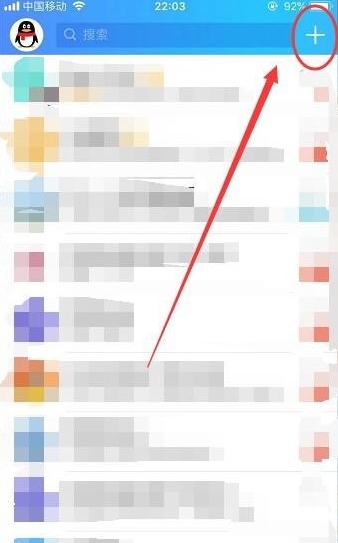 01打开手机QQ,点开进入到QQ消息页面,右上角有个+号,