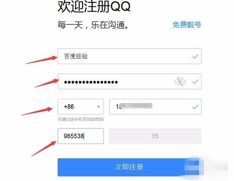 4、手机号码填写上,输入收到的验证码,点击立刻注册