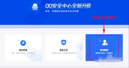 02 进入到QQ安全中心网页之后,在页面上找到账号解封功能模块,然后点击进入,