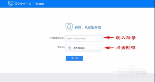 03 点击之后,即可进入到帐号解封操作了,在输入框内输入不能登录被封锁的QQ号码,然后点击下方开始验证,验证完成后会告知是否验证成功,