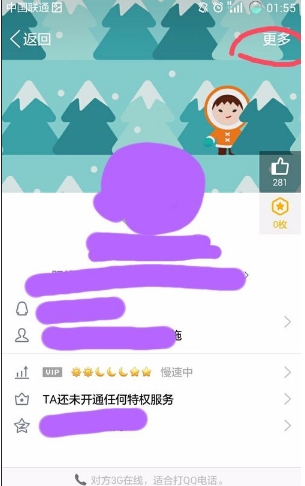 05进入好友资料信息页面,在该页右上角可以看到更多选项,点击该选项,