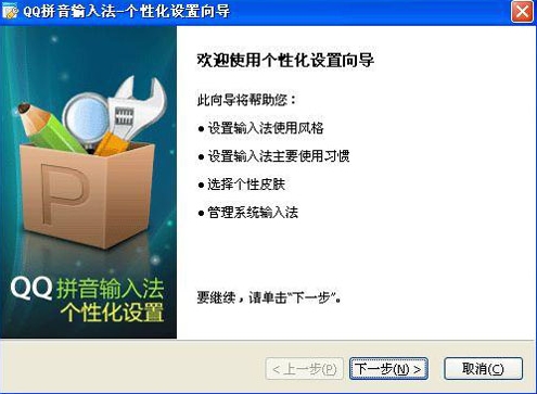 1、下载QQ拼音输入法后,即可开始安装,点击下一步,