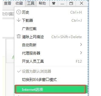 1、点击浏览器上的工具,选择internet选项
