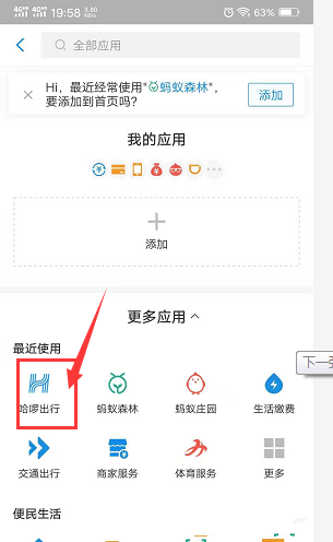 3、点击哈啰出行选项。