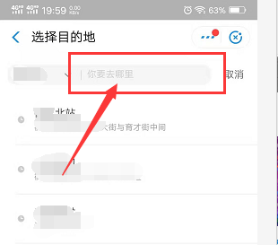 4、单击顺风车标签页,在起始位置输入相应的起点和终点。