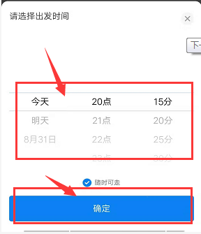 5、设置自己的出行时间,设置完之后点击确认按钮。
