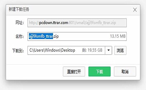 2.此时会弹出下载窗口,选择好储存位置后,点击直接打开或者下载。
