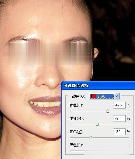 18、得到选区之后,调整一下可选颜色,这次调整红色就可以了,让原有的眼影,颜色鲜明一点就好。不用搞的太过浓郁。