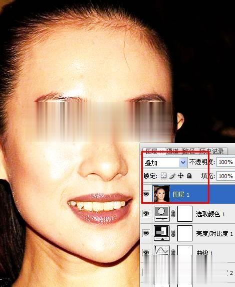 22、再来调整一下眼睛,眼睛的调整主要是给眼白部分,提亮一点,黑眼珠用图章工具稍作修饰,需要注意的就是不要吧眼白弄得太白了。