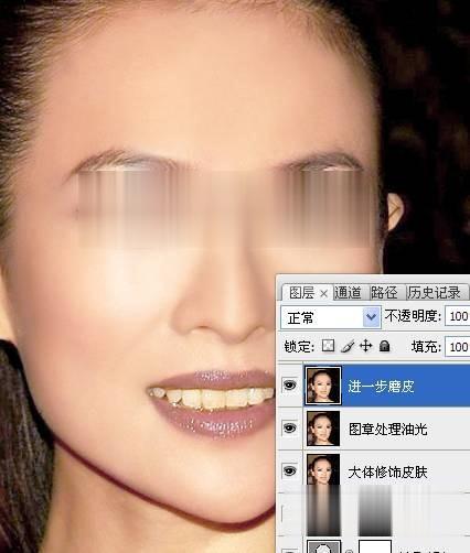 12、继续使用图章工具,给皮肤做一个进一步的细致处理。