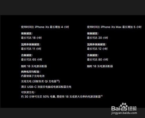 2、电池方面:新的iPhone 11 Pro相比前代续航有不少提升,iPhone 11 Pro视频播放:最长可达 18 小时、流媒体视频播放:最长可达 11 小时、音频播放:最长可达 65 小时。iPhone 11 Pro Max则要更胜一筹,视频播放:最长可达 20 小时、流媒体视频播放:最长可达 12 小时、音频播放:最长可达 80 小时,随机附增 18 瓦电源适配器,也是苹果历史上第一次标配了快充的手机。