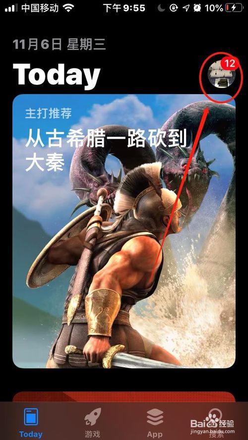 2、在”AppStore“首页,点击右上角”账号头像“,进入”账户页面“。