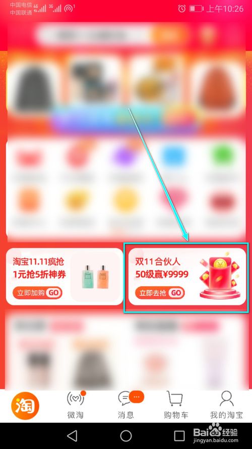 2、打开淘宝,在首页点击【双11合伙人】活动。