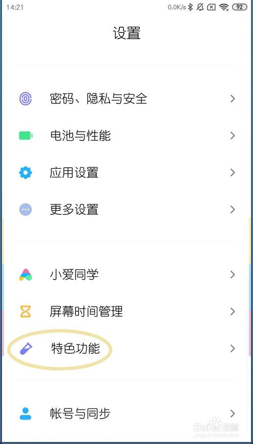 1、第一打开【设置】→【特色功能】,如图。