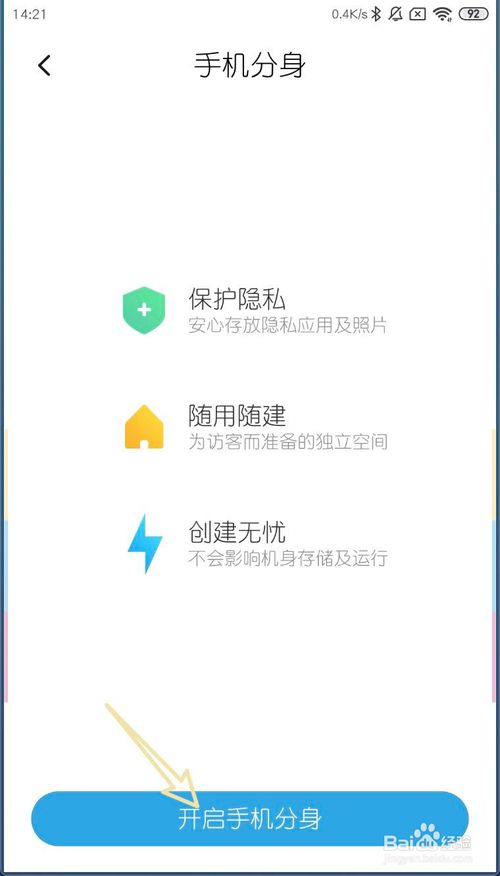 2、点击【手机分身】→【开启手机分身】。