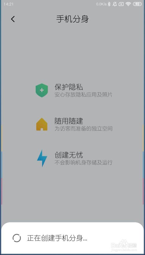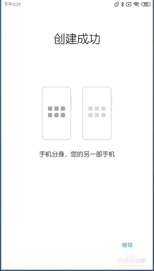 3、此时正在创建手机分身,创建成功如图二,点击继续。