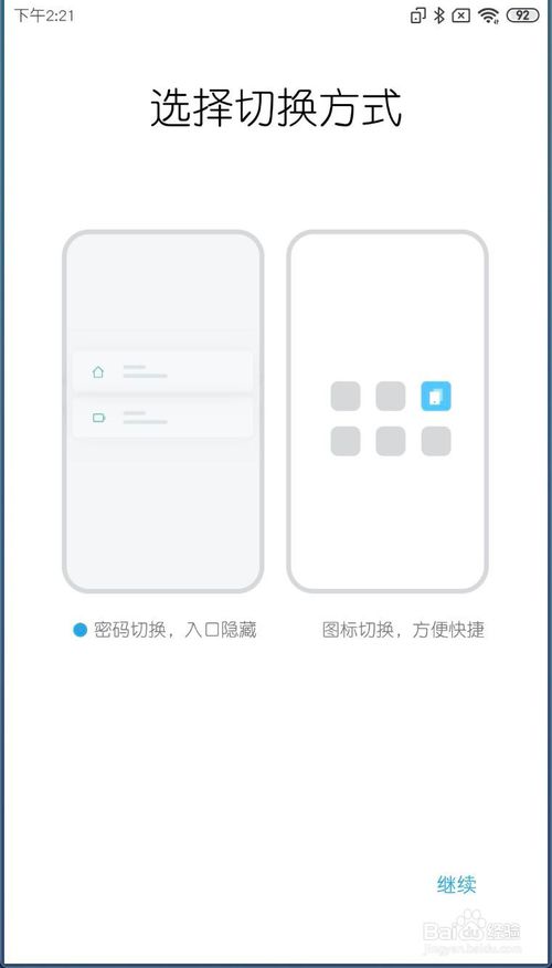 4、选择一个切换方式,然后点【跳过】即可。那么手机分身创建就好了。