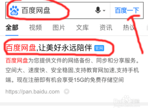 1、首先,在手机浏览器中输入“百度网盘”,并点击搜索