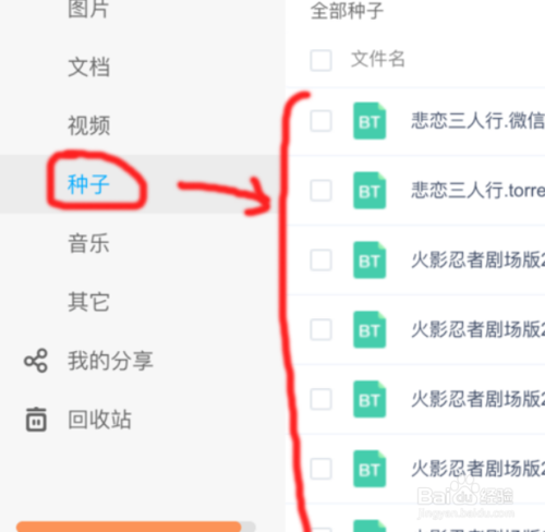 6、我们点击“种子”选项,可以看到自己网盘的“所有BT种子”