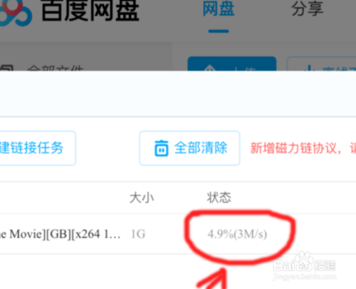 1、接着,BT种子开始下载,我们可以在“状态”下面看到下载情况,如4.9%(3M/s)