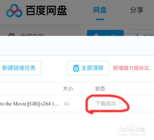 2、当BT种子全部下载完成后,会显示“下载成功”;