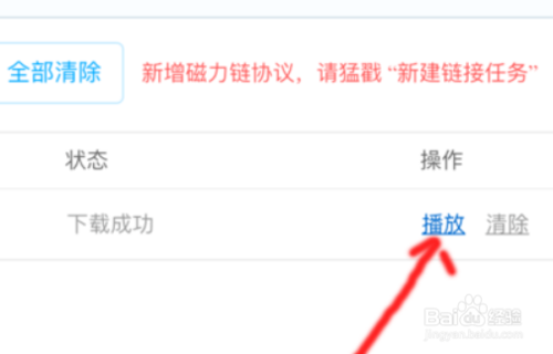 3、我们在“下载成功”的右侧,会发现一个“播放”按钮,点击即可播放影片;