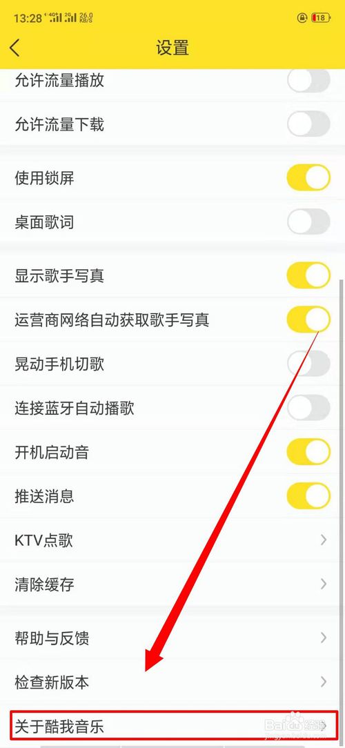 5、在设置里,我们就可以看到这个关于酷我音乐这个选项了。