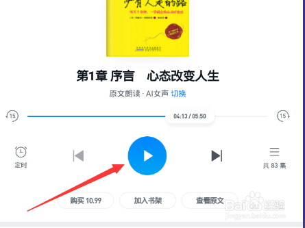 6、这样就进入到听书的界面,然后点击暂停按钮即可开始听书。