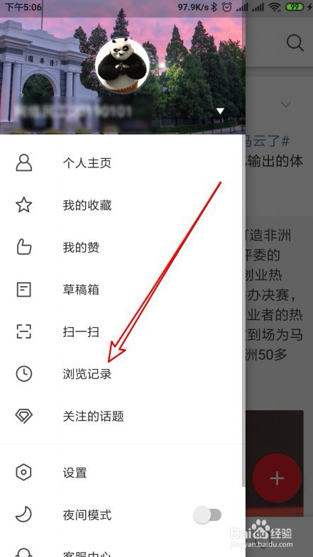 3、接着在弹出的菜单中选择浏览记录的菜单。