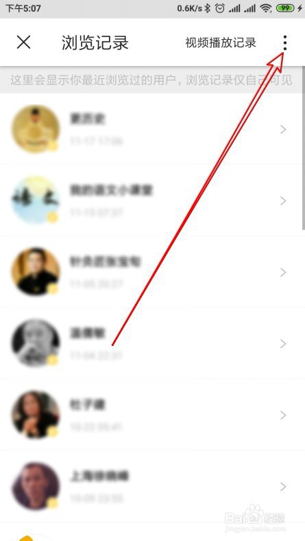 4、在打开的浏览记录的页面中点击右上角的“更多”按钮。