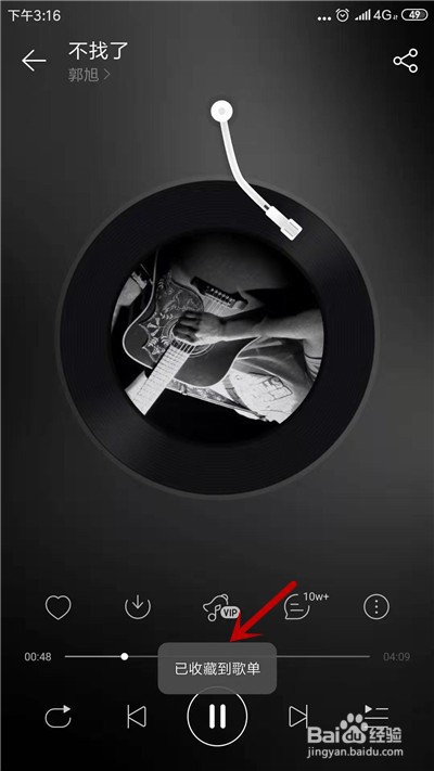 4、点击歌曲,然后会显示【已收藏到歌单】。