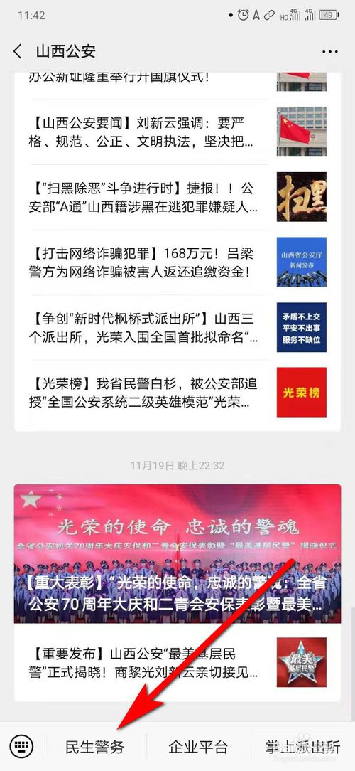 3、公众号首页,点击“民生警务”