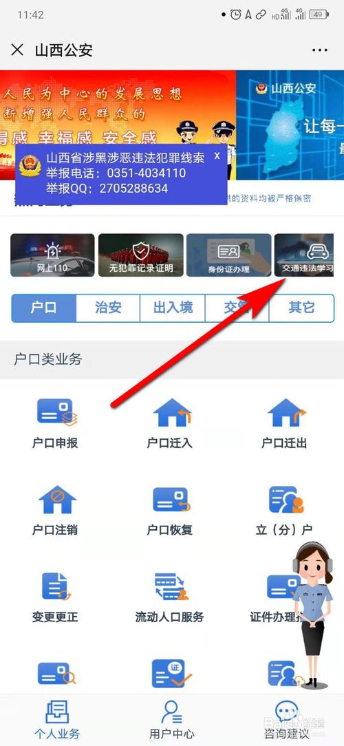 4、点击“交通违法学习”