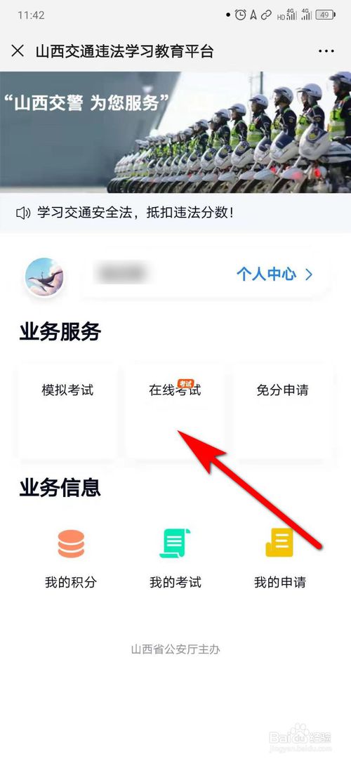 5、点击“在线考试”